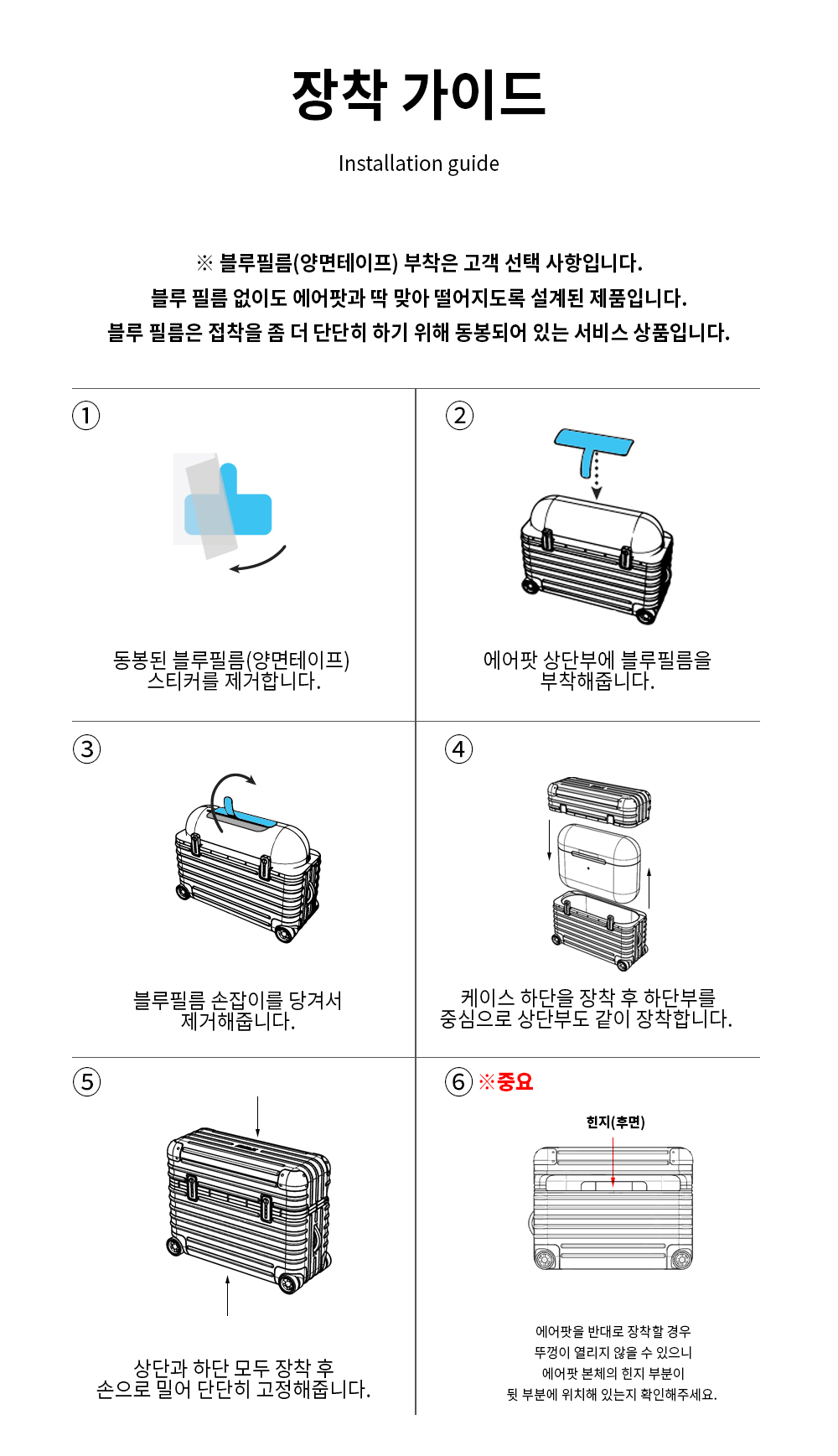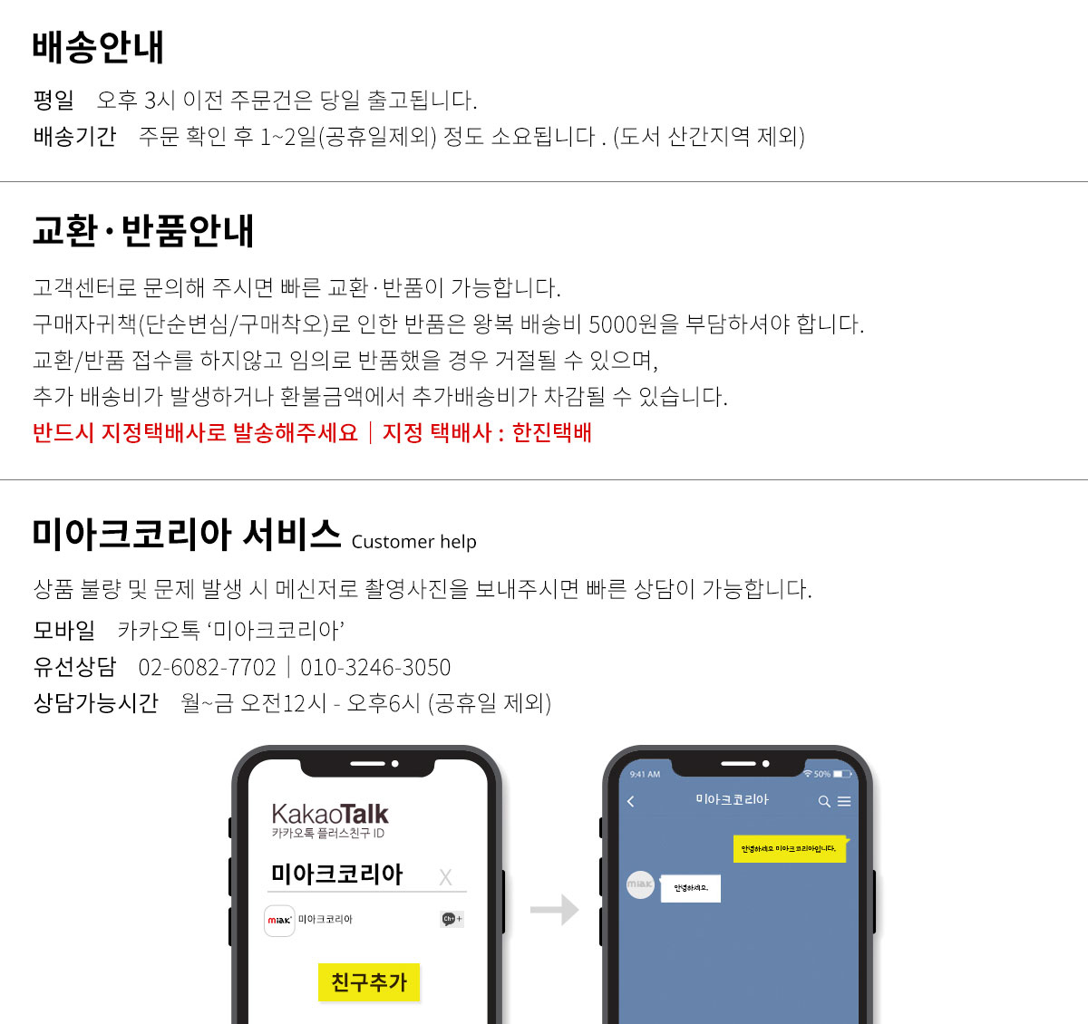 - 고객 변심으로 인한 교환/반품은 상품 수령 후 7일 이내 가능합니다.
